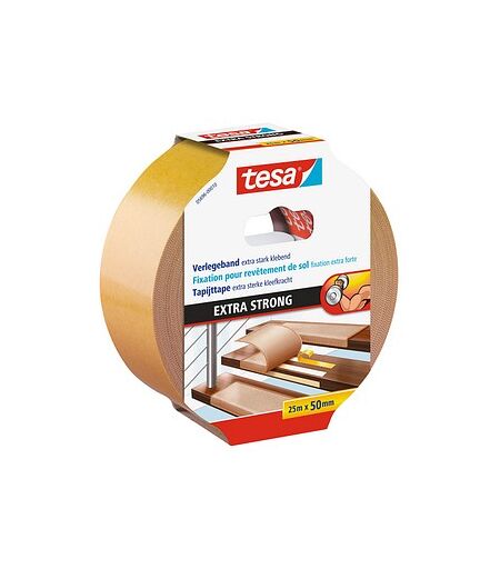 Ein starkes doppelseitiges Klebeband: das tesa EXTRA STRONG doppelseitiges Klebeband 50,0 mm x 25,0 m, 1 RolleDas doppelseitige tesa Verlegeband klebt extrastark und eignet sich ideal, um Teppiche und PVC Beläge zu verlegen und sicher zu befestigen. Ob man PVC auf dem Küchenboden, Teppichstreifen auf der Treppe oder Filz auf einer Sitzfläche verlegen möchten – das robuste Klebeband sorgt für einen festen und zuverlässigen Halt auch auf unebenen Oberflächen. Es kann auch in feuchten Räumen und in Bereichen mit Fußbodenheizung verwendet werden. Die Anwendung ist spielend einfach – abreißen, aufkleben, abziehen – fertig! Verrutschen und Faltenschlagen gehören dank tesa Klebeband der Vergangenheit an!Dauerhafter Halt für viele MaterialienSie wollen Ihre Produkte demnächst auf einem Messestand präsentieren? Das praktische Klebeband ist leicht von Hand einreißbar und lässt sich multifunktional einsetzen. Unterschiedliche Materialien befestigen Sie mit dem Klebeband dauerhaft. Ein sicherer und permanenter Halt ist dabei garantiert! Auch für den Büro-Alltag unentbehrlich zum Befestigen von Schildern oder Leisten oder um Bastel- und Dekorationsarbeiten leicht zu fixieren.Bestellen Sie jetzt das starke tesa EXTRA STRONG doppelseitiges Klebeband 50,0 mm x 25,0 m, 1 Rolle bequem in unserem Online-Shop! ...