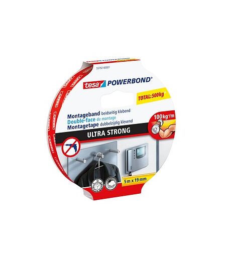 tesa Montageband POWERBOND ULTRA STRONG doppelseitiges Klebeband 19,0 mm x 5,0 m, 1 Rolle