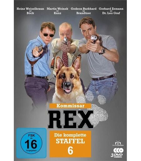 "Der Polizeihund mit dem guten Riecher und sensationellen Einschaltquoten geht zunächst mit Kriminalinspektor Richard Moser (Tobias Moretti) und seinem Kollegen Stockinger (Karl Markovics) auf Tätersuche. Diese werden dann durch die Kriminalinspektoren Alexander Brandtner (Gedeon Burkhard) und Christian Böck (Heinz Weixelbraun) abgelöst. Kommissar ""Richie"" Moser alias Tobias Moretti rettete einst den Polizeihund Rex, der bei einer Schießerei seinen Hundeführer und Besitzer verlor, und nahm ihn unter seiner Obhut. Die komplette 6. Staffel (12 Folgen) auf 3 DVDs: DVD 1: 68 Vollgas, 69 Kinder auf der Flucht, 70 Baby in Gefahr, 71 Telefonterror DVD 2: 72 Eiskalt, 73 Brudermord, 74 Tödliches Tarot, 75 Der Vollmondmörder DVD 3: 76 Ein Toter kehrt zurück, 77 Tod per Internet, 78 Jagd nach dem ewigen Leben, 79 Das Millionenpferd" ...