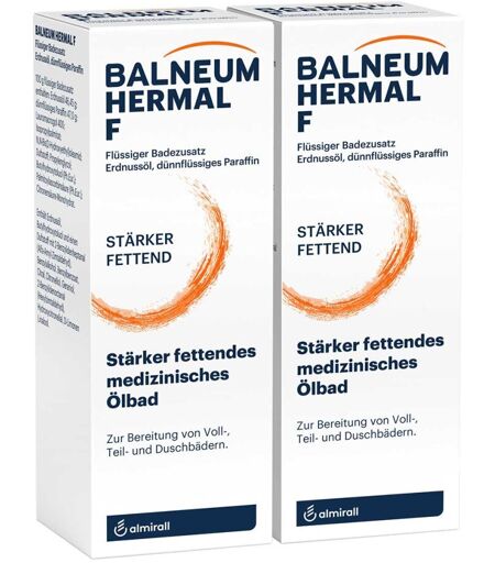 Anwendungsgebiet von Balneum Hermal F flüssiger BadezusatzDie medizinischen Ölbäder zur besonderen Behandlung trockener und beanspruchter Haut wie z.B. atopischem Ekzem (Neurodermitis), Schuppenflechte (Psoriasis), Fischschuppenkrankheit (Ichthyosis).