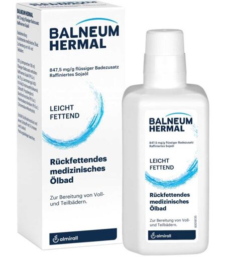 Anwendungsgebiet von Balneum Hermal flüssiger BadezusatzDie medizinischen Ölbäder zur besonderen Behandlung trockener, beanspruchter und leicht juckender Haut wie z.B. atopisches Ekzem (Neurodermitis), Schuppenflechte (Psoriasis), Fischschuppenkrankheit (Ichthyosis), Altersjuckreiz (Pruritus senilis), Ekzeme wie Windelekzem, Waschekzem.