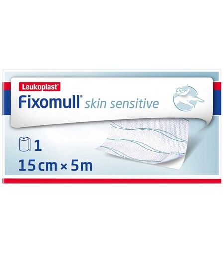 Anwendungsgebiet von Fixomull Skin Sensitive 15 cm x 5 mFixomull Skin Sensitive 15 cm x 5 m steht für eine vollflächige Fixierung von Wundauflagen oder für die Sekundärfixierung, schmerzarme Entfernung, atmungsaktive Oberfläche, besonders flexibel. Dank der Leukoplast skin sensitive Technologie, welche einen sanften Silikonauftrag beinhaltet, ist das Produkt besonders für Patienten mit fragiler Haut, wie ältere Patienten oder Säuglingen, geeignet.DosierungAnwendungsempfehlung von Fixomull Skin Sensitive 15 cm x 5 m:
