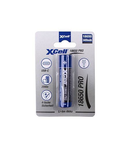 XCell® Akku 18650 3400 mAh – immer wieder neue EnergieDer XCell® Akku 18650 3400 mAh versorgt Ihre elektrischen Geräte zuverlässig mit Energie und kann immer wieder aufgeladen werden. Dank ihm senken Sie Ihre Abfallmenge und sparen sich das ständige Nachkaufen von Batterien.Die Spezifikationen auf einen BlickJe höher die Kapazität, desto länger kann Energie abgegeben werden. Über 3400 mAh verfügt dieses Produkt. Um Beschädigungen zu vermeiden, sollte die Spannung mit Ihrem Gerät kompatibel sein. Diese mobile Energiequelle hat eine Spannung von 3,7 V (Volt). Insbesondere für kompatibel mit den meisten 18650 basierten Lampen, einsetzbar in vielen Bereichen ist der XCell® Akku geeignet. Er hat außerdem diese Eigenschaft: mit USB Typ-C Ladebuchse, geschützt.Informationen, auf die es ankommtZu folgendem Batterietyp gehört das Modell aus Lithium-Ion (Li-Ion): 18650. Die Zahlen- und Buchstabenkombinationen geben Aufschluss über die Zusammensetzung und Größe der Batterie.Anzahl der LadezyklenSie möchten wissen, wie lange die Lebensdauer des XCell® Akkus ist? – Er ist bis zu 2.000 mal wieder aufladbar.Holen Sie die Power, die Ihr Alltag braucht!Es ist an der Zeit, das Problem mit den leeren Energiespendern anzugehen. Sorgen Sie für dauerhaft Energie und bestellen Sie den XCell® Akku 18650 3400 mAh bei uns im Online-Shop. ...