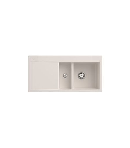 Villeroy und Boch Subway Flächenbündige Spüle 67121FKR Becken rechts, mit Ablaufgarnitur und Handbetätigung, Crema