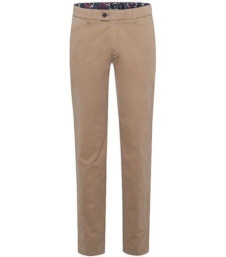 Die Herren-Chino ist aus Baumwolle gefertigt und hat einen angenehmen Griff. Sie wird mit einem Reißverschluss und einem Knopf verschlossen. Die Chino hat eine schmale Passform mit schmalem Bein und ist in der Farbe Beige gehalten. Sie verfügt über Eingrifftaschen und bietet einen hohen Tragekomfort, was sie zu einem vielseitigen und bequemen Kleidungsstück macht. Material: 97% Baumwolle, 3% Elasthan ...