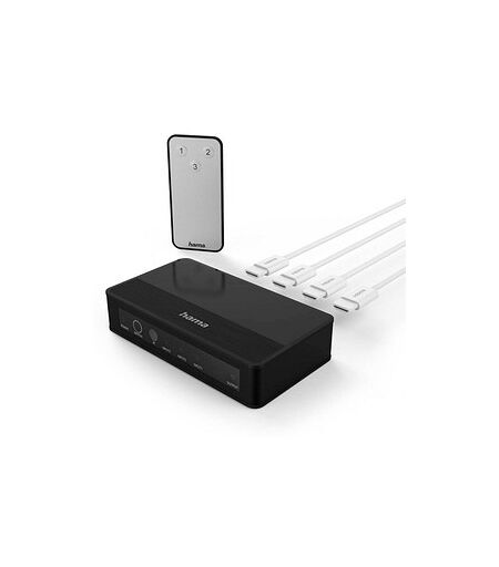 Die praktische Art, Ihre Daten zu übertragen: der hama HDMI-Switch 3-fachMöchten Sie mehrere HDMI-Geräte anschließen, ist der hama HDMI-Switch 3-fach genau das Richtige für Sie. Denn viele Bildschirme verfügen heutzutage nur noch über sehr wenige Anschlussmöglichkeiten. Mit diesem Hilfsmittel wirken Sie diesem Umstand entgegen.Diese Anschlüsse hat der hama HDMI-Switch 3-fach zu bietenMit 3 Schnittstellen des folgenden Typs ist das Produkt ausgestattet: HDMI. Schnelle Geschwindigkeiten beim Übertragen und SpeichernDer hama HDMI-Switch 3-fach macht eine Datenübertragung in 4k-Qualität möglich. Was das Gerät so besonders machtUnter den zahlreichen tollen Features sind diese hier hervorzuheben: mit Fernbedienung zum komfortablen Wechseln zwischen den angeschlossenen Gerätenunterstützt folgende Auflösungen: 1080p/1080i/720p/576p/576i/480p/480i@50/60 Hzunterstützt folgende Video-Formate: 12bit Full HD Video3D Video und 4Kx2k@30/60 Hz Ultra HD VideoDieses Gerät findet überall PlatzMit Maßen von 13,0 x 1,5 x 5,5 cm (BxTxH) nimmt der hama HDMI-Switch 3-fach nicht allzu viel Platz weg. Sie können das aus robustem Aluminium bestehende Gerät also stets flexibel positionieren. Die Stromversorgung erfolgt mittels Netzteil oder HDMI und ist somit einfach und bequem zu bewerkstelligen.Passt dieses Produkt zu Ihren Ansprüchen?Dann bestellen Sie den hama HDMI-Switch 3-fach doch einfach hier bei uns online! ...