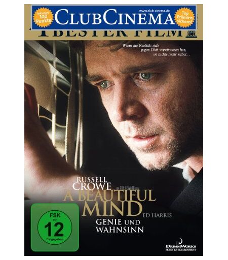 AspectRatio : 1.77 : 1, AudienceRating : Freigegeben ab 12 Jahren, Brand : DreamWorks, Binding : DVD, Label : Paramount Home Entertainment, Publisher : Paramount Home Entertainment, NumberOfDiscs : 1, RegionCode : 2, NumberOfItems : 1, Format : Dolby, Feature : Jahr : 2001, medium : DVD, publicationDate : 2006-08-01, releaseDate : 2006-08-08, runningTime : 130 minutes, theatricalReleaseDate : 2002-09-19, writers : Sylvia Nasar, actors : Russell Crowe, Jennifer Connelly, Ed Harris, directors : Ron Howard, music : James Horner ...
