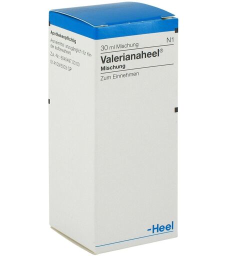 Wirkstoffe / Inhaltsstoffe / Zutaten100 µl Acidum picrinicum (hom./anthr.)10 µl Ammonium bromatum (hom./anthr.)20 µl Avena sativa (hom./anthr.)20 µl Chamomilla recutita (hom./anthr.)50 µl Crataegus (hom./anthr.)50 µl Humulus lupulus (hom./anthr.)50 µl Hypericum perforatum (hom./anthr.)10 µl Kalium bromatum (hom./anthr.)30 µl Melissa officinalis (hom./anthr.)10 µl Natrium bromatum (hom./anthr.)650 µl Valeriana officinalis (hom./anthr.)Ethanol Hilfstoff (+)Valeriana Heel Tropfen können in Ihrer Versandapotheke www.apotheke.at erworben werden. ...