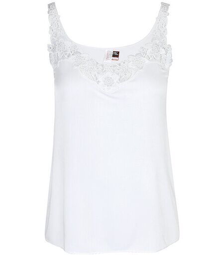 Damen Top aus fließendem Viskose-Mix Ohne Arm V-Ausschnitt Hochwertiges Stickereimotiv Schmale, glänzende Abschlüsse Dekorativer Muschelsaum Weich und hautfreundlich Blickdicht Unter fairen Bedingungen hergestellt in unserem Werk in Europa Unifarben Gerade Passform Farbbezeichnung: Weiss Material: 81% Viskose 19% Polyester ...