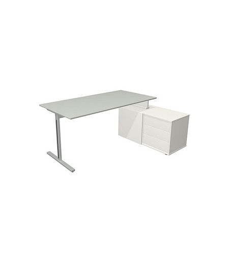 Kerkmann Form 1 Schreibtisch lichtgrau, weiß rechteckig, T-Fuß-Gestell silber 160,0 x 80,0 cm