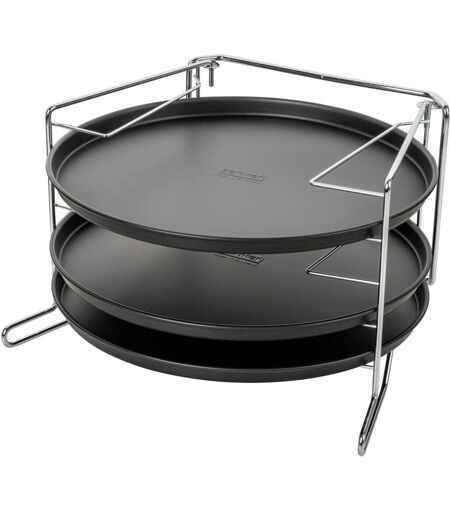 Das Pizza-Set von Zenker für das schnelle Backen von bis zu 3 Pizzen gleichzeitig. Das Set besteht aus drei Pizzablechen (Ø 29 cm) und einem platzsparendem Gestell. Die Bleche haben eine Teflon Classic Antihaftbeschichtung, hitzebeständig bis +230°C, Made in Germany ...