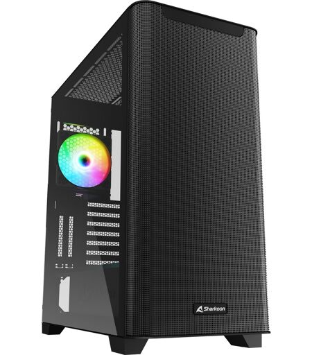 Im dezenten Design und einer großflächigen Mesh-Front erweist sich das Sharkoon M30 RGB als vielseitig einsetzbar. Ein vorinstallierter 120-Millimeter-RGB-PWM-Lüfter schafft tolle Lichteffekte, während ein Seitenteil aus gehärtetem Glas Einblicke ins geräumige Innere erlaubt. Dank der Mesh-Front und der Möglichkeit, einen 360-mm-Radiator hinter der Front oder auf der Oberseite einzubauen, liegen die Temperaturen im M30 RGB im kühlen Bereich. Das M30 ist mit umfangreichen Kühlmöglichkeiten ausgestattet. In dem ATX-Gehäuse können bis zu sieben Lüfter eingebaut werden. Ein 120-Millimeter- PWM-Lüfter sitzt bereits hinter der Front, ein 120-Millimeter-RGB-PWM-Lüfter an der Rückseite. Dank der RGB-Steuerung lässt sich das Gehäuse mit tollen Effekten ausleuchten, die durch das Seitenteil aus gehärtetem Glas besonders gut zur Geltung kommen. Mattschwarz gehalten und minimalistisch gestaltet, hat das M30 RGB eine zeitlose Optik, die in jedes Setup passt. Das unterstreicht auch die großflächig mit Mesh überzogene Front. Durch die abgerundeten Kanten wird sowohl das dezente Design hervorgehoben, gleichzeitig kann über die Frontblende massig Luft ins Gehäuse gezogen werden. Wer bei der Kühlung der verbauten Komponenten lieber auf Wasser anstatt auf Luft setzt, findet im M30 RGB die Voraussetzungen dafür. An der Oberseite oder hinter der Front kann ein 360-mm-Radiator installiert werden. Je nach Größe des Mainboards und Höhe des RAM können der Radiator und die Lüfter auf der Oberseite von 5 bis 20 Zentimeter hoch sein. Hinter der schlichten Optik des Gehäuses verbirgt sich massig Platz im Innenraum. Große Hardware mit üppigen Abmessungen lässt sich ganz leicht für leistungsstarke Builds verbauen. Netzteile mit einer Länge bis zu 22 Zentimeter oder Grafikkarten bis zu 38 Zentimeter können installiert werden. Für eine schnelle Datenübertragung und eine ideale Konnektivität zu modernen Mobilgeräten ist das M30 RGB mit einem USB-Typ-C-Anschluss ausgestattet. Eine entspannte Installation aller Teile wird mit dem M30 RGB ganz einfach gemacht. Im Netzteil-Tunnel oder hinter dem Mainboard-Tray lassen sich Festplatten oder SSDs mit wenigen Handgriffen verbergen. Durch die leicht zugänglichen Kabeldurchführungen verschwindet auch schnell die Verkabelung, wodurch im Gehäuse zu jeder Zeit alles aufgeräumt und ordentlich ist. ...
