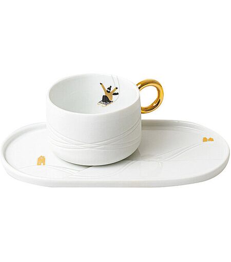 RAEDER Tasse mit Servierplatte Schneetag Schlittenfahreb weiss B