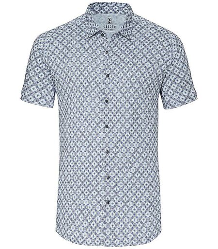 Herren Hemd aus reiner Baumwolle Kentkragen Kurzarm Schließt mit Knopfleiste Schmal geschnitten Gemustert Farbbezeichnung: Grau-Blau Material: 100% Baumwolle ...