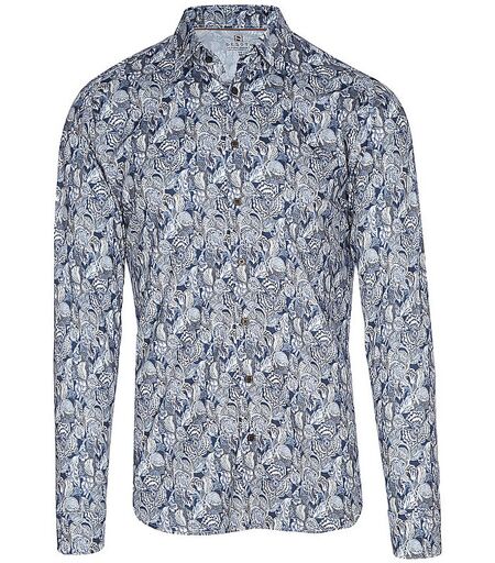 Herren Hemd aus Baumwolle Kentkragen Langarm mit Manschette Schmal geschnitten Allover Print Farbbezeichnung: Navy/Braun/Weiss Material: 100% Baumwolle ...