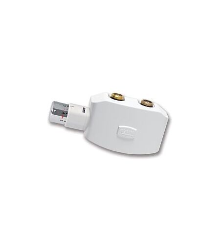 Bemm Softline M-Ventil ZMUVDCR5 mit Voreinstellung zum Befüllen absperren und entleeren mit Thermostat Puro eleganter schlanker Design-Heizkörperregler mit eingebautem Flüssigkeitselement mit verchromter Griffhülse für Ventilanschluss M 30 x 1,5 Minimalstellung: Nullstellung zum Einsatz in 2-Rohr-Anlagen bis 10 bar Betriebsüberdruck mit beliebiger Durchflussrichtung vernickelt mit Thermostat-Anschlussgewinde M 30 x 1,5 mit Bauschutzkappe mit 2 Spezial-Einschraubstutzen mit O-Ring DN 15 (1/2) und AG 3/4 Eurokonus für Rohranschluss mittels Klemmringverschraubung. Komplett mit eleganter Softline-Verkleidung aus schlagfestem Kunststoff einschließlich Distanzstück Sechskantschraube und Logo-Deckel ...