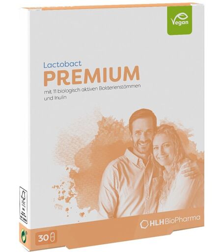 Anwendungsgebiet von Lactobact PREMIUM Darm-Probiotikum mit Inulin KapselnLactobact PREMIUM ist ein Breitband-Probiotikum in Apothekenqualität, das traditionell zur Unterstützung der Darmflora mit guten Bakterien bei vielfältigen und regelmäßig wiederkehrenden Darm- und Verdauungsbeschwerden unterschiedlichster Art (z. B. Reizdarm), Allergien sowie anschließend an eine abgeschlossene Antibiotikatherapie Anwendung findet.Wissenschaftliche Erkenntnisse belegen sehr gute Ergebnisse von Probiotika bei einem Reizdarm, welcher sich durch wechselnde Verdauungsbeschwerden, Darmträgheit oder situativen Durchfall äußert. Symptome des Reizdarmsyndroms sind regelmäßige Darmprobleme wie Verstopfung, flüssiger und unregelmäßiger Stuhlgang, übermäßige Blähungen, damit einhergehende Bauchschmerzen, Bauchkrämpfe und ein Völlegefühl. Das Präparat wird von Therapeuten bei einer Darmsanierung zur gezielten Wiederherstellung des Gleichgewichts der Darmflora, zur Stärkung des darmassoziierten Immunsystems, zur Vorbeugung und Therapie bei Allergien sowie Unverträglichkeiten und für den gezielten Darmaufbau nach Darminfektionen sowie als ganzheitliche Darmkur nach der Einnahme eines Antibiotikums empfohlen.Mit einer einzigen mikroverkapselten und magensaftresistenten Kapsel täglich wird das Darmmikrobiom heranwachsender und erwachsener Personen auf natürliche Weise gefördert. Jede Kapsel enthält höchstdosierte 8 Milliarden lebensfähige Bakterien aus 11 wissenschaftlich ausgewählten, aufeinander abgestimmten und biologisch aktiven Bakterienstämmen sowie den innovativen Ballaststoff Inulin.Durch die Mikroverkapselung werden die natürlichen Darmbakterien vor Gallen- und Magensäure geschützt, wodurch die Lebens- und Vermehrungsfähigkeit der nützlichen Bakterien gefördert wird. Dadurch haben die Darmbakterien eine 5-mal höhere Überlebensrate als Bakterien in herkömmlichen Darmkur-Produkten, und 8 Milliarden mikroverkapselte Bakterien entsprechen somit 4 ...