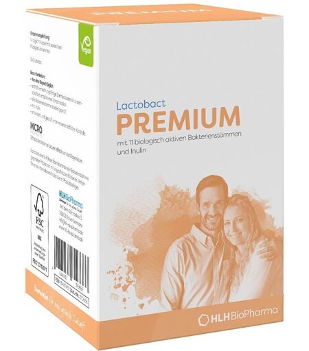 Anwendungsgebiet von Lactobact PREMIUM Darm-Probiotikum mit Inulin KapselnLactobact PREMIUM ist ein Breitband-Probiotikum in Apothekenqualität, das traditionell zur Unterstützung der Darmflora mit guten Bakterien bei vielfältigen und regelmäßig wiederkehrenden Darm- und Verdauungsbeschwerden unterschiedlichster Art (z. B. Reizdarm), Allergien sowie anschließend an eine abgeschlossene Antibiotikatherapie Anwendung findet.Wissenschaftliche Erkenntnisse belegen sehr gute Ergebnisse von Probiotika bei einem Reizdarm, welcher sich durch wechselnde Verdauungsbeschwerden, Darmträgheit oder situativen Durchfall äußert. Symptome des Reizdarmsyndroms sind regelmäßige Darmprobleme wie Verstopfung, flüssiger und unregelmäßiger Stuhlgang, übermäßige Blähungen, damit einhergehende Bauchschmerzen, Bauchkrämpfe und ein Völlegefühl. Das Präparat wird von Therapeuten bei einer Darmsanierung zur gezielten Wiederherstellung des Gleichgewichts der Darmflora, zur Stärkung des darmassoziierten Immunsystems, zur Vorbeugung und Therapie bei Allergien sowie Unverträglichkeiten und für den gezielten Darmaufbau nach Darminfektionen sowie als ganzheitliche Darmkur nach der Einnahme eines Antibiotikums empfohlen.Mit einer einzigen mikroverkapselten und magensaftresistenten Kapsel täglich wird das Darmmikrobiom heranwachsender und erwachsener Personen auf natürliche Weise gefördert. Jede Kapsel enthält höchstdosierte 8 Milliarden lebensfähige Bakterien aus 11 wissenschaftlich ausgewählten, aufeinander abgestimmten und biologisch aktiven Bakterienstämmen sowie den innovativen Ballaststoff Inulin.Durch die Mikroverkapselung werden die natürlichen Darmbakterien vor Gallen- und Magensäure geschützt, wodurch die Lebens- und Vermehrungsfähigkeit der nützlichen Bakterien gefördert wird. Dadurch haben die Darmbakterien eine 5-mal höhere Überlebensrate als Bakterien in herkömmlichen Darmkur-Produkten, und 8 Milliarden mikroverkapselte Bakterien entsprechen somit 4 ...