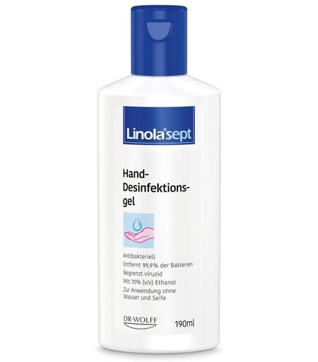Linola® sept Hand-Desinfektionsgel Das Linola® sept Hand-Desinfektionsgel enthält 63g Ethanol pro 100g Gel. Entfernt 99,9% der Bakterien und inaktiviert behüllte Viren, wie Influenzaviren und Coronaviren („begrenzt viruzid“).antibakteriellentfernt 99,9% aller Bakterieninaktiviert behüllte Viren wie Corona und Influenza ("begrenzt viruzid")zur Anwendung ohne Wasser und SeifeAnwendungZum Auftragen auf die Haut. Zur hygienischen Händedesinfektion 3 - 5 ml Gel in den Händen verreiben und mindestens 30 Sekunden einwirken lassen. Biozidprodukte vorsichtig verwenden. Vor Gebrauch stets Etikett und Produktinformationen lesen.IngredientsETHANOL (63g auf 100g Gel), AQUA, GLYCERIN, PEG/PPG-18/18 DIMETHICONE, TETRAHYDROXYPROPYL ETHYLENEDIAMINE, ACRYLATES/C10-30 ALKYL ACRYLATE CROSSPOLYMER, PARFUM, HEXYL CINNAMAL, LIMONENE, LINALOOL, CITRONELLOL. ...