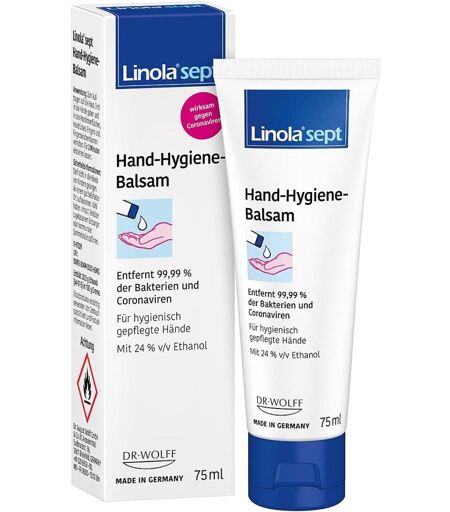 Anwendungsgebiet von Linola Sept Hand Hygiene BalsamLinola Sept Hand Hygiene Balsam bietet Ihnen rundum das Gefühl von geschützten Händen, denn sie dient zum Auftragen auf die Haut und entfernt Bakterien und Viren (z.B. Coronaviren). Wirkungsweise von Linola Sept Hand Hygiene BalsamLinola Sept Hand Hygiene Balsam inaktiviert Coronaviren vollumfänglich innerhalb von 2 Minuten (4 log-Stufen gemäß EN 14476) und wirkt auch effektiv gegen Bakterien. Die Inhaltsstoffe sind feuchtigkeitsspendend und wirken rückfettend. Die Hautverträglichkeit ist dermatologisch bestätigt. Wirkstoffe / Inhaltsstoffe / ZutatenInhaltsstoffe von Linola Sept Hand Hygiene Balsam: