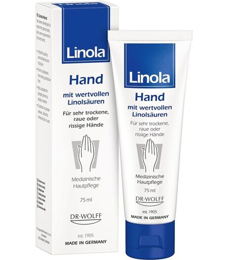 Anwendungsgebiet von Linola Hand CremeLinola Hand Creme ist eine Pflegecreme für die speziellen Bedürfnisse strapazierter Haut. Bei Neurodermitis, Altershaut oder häufigem Händewaschen wird die natürliche Schutzbarriere der Haut gestört. Die Folge sind sehr trockene, raue und rissige Hände. Linola Hand Creme spendet Feuchtigkeit und fördert den Aufbau der natürlichen Schutzbarriere. Spannungsgefühle werden reduziert und die Hände bleiben spürbar geschmeidig.