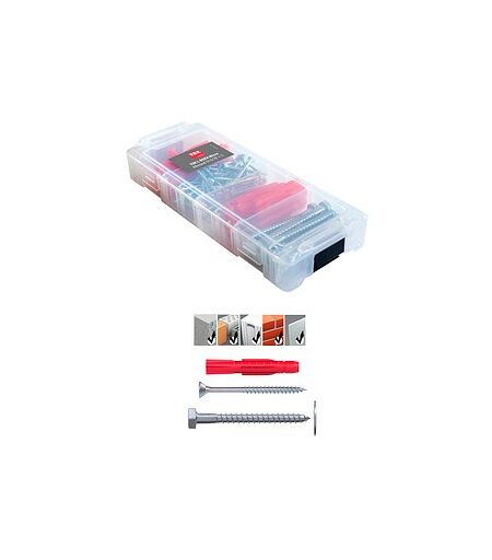Flexibel arbeiten mit System – TOX L-BOXX Micro Allround TRI 6/10 094901803 Dübel- und Schrauben-SortimentDas TOX L-BOXX Micro Allround TRI 6/10 094901803 Dübel- und Schrauben-Sortiment ist ideal, wenn Sie flexibel und ohne lange Vorbereitung arbeiten möchten. Die passenden Teile sind sofort griffbereit und decken die meisten Standardfälle ab. So gelingt jede Befestigung im Handumdrehen. Es eignet sich für Beton, Gipskarton, Hohldecken aus Ziegel, Beton o. ä., Kalksand-Vollstein und Ziegel.Was das Produkt so besonders machtDas Produkt hat folgende Besonderheit: Ohne Rand – ideal für Vor- und Durchsteckmontage geeignet.Aus welchem Material bestehen die Montageelemente?Nylon überzeugt durch hohe Flexibilität und Belastbarkeit. Es passt sich dem Untergrund optimal an und sorgt für sicheren Halt.Sicherer Transport und OrdnungVergessen Sie das lästige Suchen nach den passenden Elementen: In der praktischen, wiederverwendbaren Kunststoffbox ist das Befestigungsmaterial stets ordentlich und übersichtlich verstaut. Sie erhalten ein praktisches Set aus folgenden Komponenten: 50x Tri 6/36 Allzweckdübel 6 x 36 mm (ØxL), 10x Tri 8/51 Allzweckdübel 10 x 61 mm (ØxL), 50x Spanplattenschrauben 4,5 x 50 mm (ØxL), SK TX 25 TG, 10x Sechskantschrauben 8,0 x 80 mm (ØxL) DIN 571 vz, 10x U-Scheiben 16 x 8,4 (ØxH) DIN 125.Greifen Sie zu – für stabile VerbindungenDieses "Made in Germany"-Produkt zeugt von hohem Qualitätsstandard. Bestellen Sie jetzt das TOX L-BOXX Micro Allround TRI 6/10 094901803 Dübel- und Schrauben-Sortiment direkt hier in unserem Shop und sichern Sie sich die optimale Ausrüstung für Ihre Projekte! ...