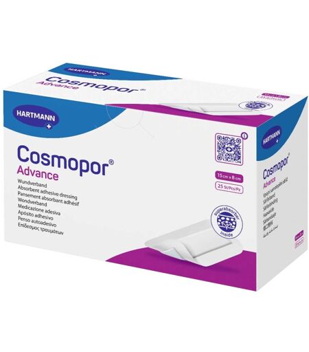 Anwendungsgebiet von Cosmopor Advance 8x15 cmCosmopor Advance 8x15 cm – Der besonders saugfähige Wundverband für die postoperative VersorgungCosmopor Advance 8x15 cm wurde für Situationen entwickelt, in denen höchste Saugkraft und zuverlässiger Schutz gefragt sind. Der sterile, selbstklebende Wundverband besteht aus einem besonders weichen Trägervlies und enthält ein hoch absorbierendes Wundkissen, das für optimalen Komfort sorgt.Dank der integrierten DryBarrier® Technologie wird Wundexsudat schnell aufgenommen und sicher im Verband eingeschlossen – selbst bei Druckbelastung wird keine Flüssigkeit wieder abgegeben. Diese effektive Kombination aus hoher Aufnahmekapazität und minimaler Rücknässung trägt dazu bei, dass der Verband länger auf der Wunde verbleiben kann.Cosmopor Advance 8x15 cm bietet Ihnen damit eine moderne, hygienische und hautschonende Lösung für die postoperative Wundversorgung – zuverlässig, komfortabel und effizient.HinweiseTrocken & vor direkter Sonneneinstrahlung geschützt lagernCosmopor Advance 8x15 cm können in Ihrer Versandapotheke www.apotheke.at erworben werden. ...
