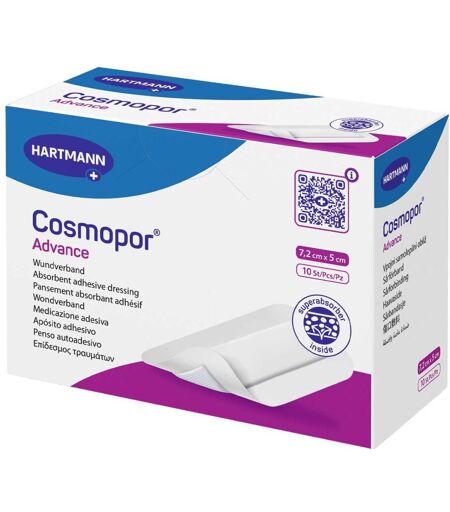 Anwendungsgebiet von Cosmopor Advance 5x7,2 cmCosmopor Advance 5x7,2 cm – Für höchste Saugkraft und zuverlässigen WundschutzCosmopor® Advance wurde speziell für die anspruchsvolle Wundversorgung entwickelt und überzeugt durch seine besonders hohe Saugfähigkeit. Ausgestattet mit der innovativen DryBarrier® Technologie, nimmt das integrierte Wundkissen überschüssiges Exsudat zuverlässig auf und schließt es sicher ein – selbst bei Druckbelastung. Ein ungewolltes Zurückfließen wird effektiv verhindert.Diese Eigenschaft ermöglicht es, dass der Verband länger auf der Wunde verbleiben kann, ohne dass die Haut durch Rücknässung gereizt wird. Dadurch wird ein hygienischer und komfortabler Heilungsverlauf unterstützt – besonders in der postoperativen Versorgung.Cosmopor Advance 5x7,2 cm ist ein steriler, selbstklebender Wundverband mit einem weichen, anschmiegsamen Trägervlies und einem hoch absorbierenden Wundkissen. Er bietet Ihnen eine sichere, angenehme Lösung für die Versorgung von akuten oder chirurgischen Wunden – verlässlich, hautfreundlich und leistungsstark zugleich.HinweiseTrocken & vor direkter Sonneneinstrahlung geschützt lagern.Cosmopor Advance 5x7,2 cm können in Ihrer Versandapotheke www.apotheke.at erworben werden. ...