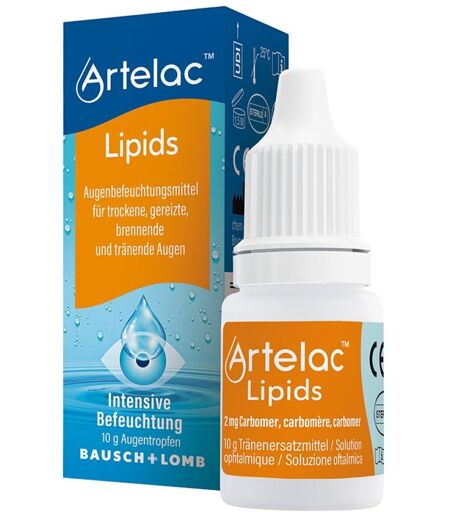 Wirkungsweise von Artelac Lipids Augengeltropfen für stark tränende Augen Artelac Lipids Augengeltropfen für stark tränende Augen sind wie ein Schutzschild, das als Tropfgel langanhaltend die Augenoberfläche schützt. Die enthaltenen reichhaltigen Lipide ergänzen und stabilisieren die Lipidschicht des Tränenfilms, wodurch die Verdunstung der wässrigen Schicht reduziert wird. Das Carbomer befeuchtet zusätzlich langanhaltend die Horn- und Bindehaut.