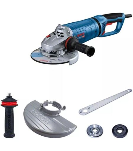 Der leistungsstarke Bosch Winkelschleifer GWS 27-180 JR Professional verfügt über einen effizienten, 2.700 Watt starken Motor und ein komfortables Design. Der Haupthandgriff lässt sich auf Knopfdruck um 90° drehen. So bietet er immer den perfekten Griff, ob fürs Schleifen oder Trennen, für Rechts- oder Linkshänder. Die Sperrfunktion gewährleistet dabei, dass der Schleifer erst startet, wenn der Haupthandgriff vollständig um 90° gedreht und mit einem "Klick" eingerastet ist. Der arretierbare Schalter und der Sanftanlauf machen die Bedienung zusätzlich leicht und komfortabel, auch bei längeren Arbeitseinsätzen. Darüber hinaus ist der GWS 27-180 JR Professional mit KickBack Control, Vibration Control und einer praktischen, schlüssellosen Haube für Schleifanwendungen ausgestattet. Der Wiederanlaufschutz verhindert ein selbstständiges, unkontrolliertes Wiederanlaufen der Maschine nach einer Stromunterbrechung. ...