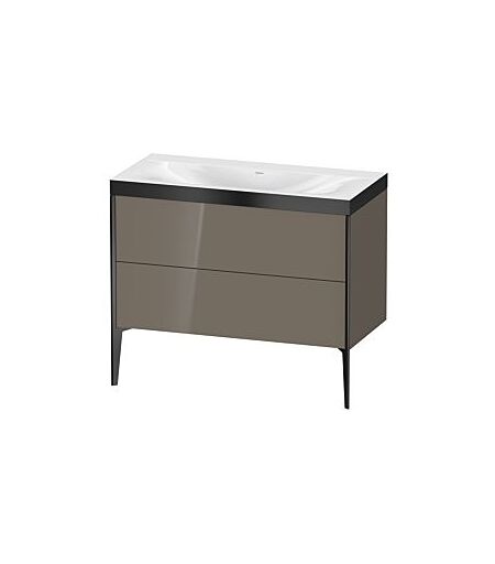 Duravit XViu Waschtisch-Unterschrank XV4711NB289P 100x48cm, 2 Auszüge, ohne Hahnloch, schwarz matt, Rahmen P, flannel grey hochglanz