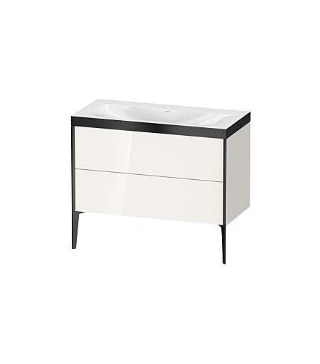 Duravit XViu Waschtisch-Unterschrank XV4711NB222P 100x48cm, 2 Auszüge, ohne Hahnloch, schwarz matt, Rahmen P, weiß hochglanz