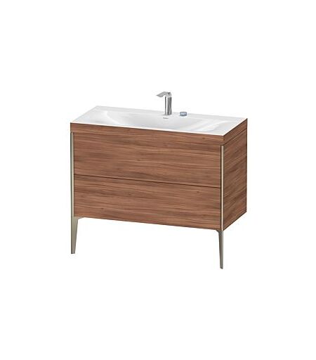Duravit XViu Waschtisch-Unterschrank XV4711EB179C 100x48cm, 2 Auszüge, 2 Hahnlöcher, champagner matt, Rahmen C, nussbaum natur
