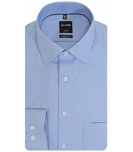 Herren Hemd aus reiner Baumwolle Kentkragen Langarm Ärmelmanschette mit zwei Knöpfen Brusttasche links mit kleiner Logostickerei Karo-Muster Farbe: Hellblau Abgerundeter Saum Bügel- und Knitterfrei Material: 100% Baumwolle Die Marke OLYMP ist Mitglied der Fair Wear Foundation. ...
