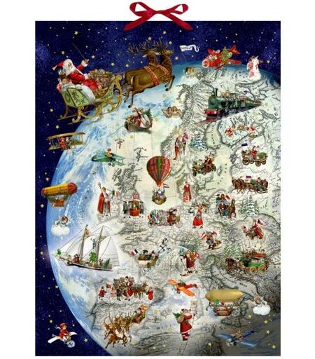 Großer Adventskalender mit Glitter und Schleifenband. Der Weihnachtsmann ist unterwegs, um Geschenke für Groß und Klein zu verteilen. Auf seiner Reise trifft er auf die unterschiedlichen Bräuche und Traditionen aus vielen Ländern. Hinter jedem Türchen gibt es spannende Motive und Informationen zu den unterschiedlichsten Weihnachtsfiguren und -bräuchen ganz unterschiedlicher Länder zu entdecken. ...