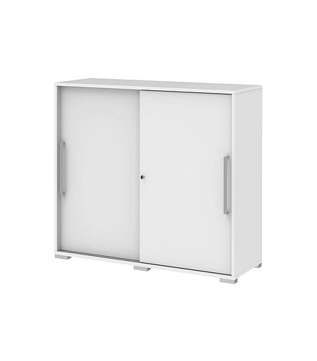 Hier wird Ordnung großgeschrieben: röhr Schiebetürenschrank Imperia, 194-0A5-9010-90-F1 weiß 4 Fachböden 120,0 x 40,0 x 110,5 cmDer röhr Schiebetürenschrank Imperia, 194-0A5-9010-90-F1 weiß 4 Fachböden 120,0 x 40,0 x 110,5 cm ist ein echtes Raumwunder, wenn Sie im Büro nicht so viel Platz haben und weiteren Stauraum benötigen. Er ist platzsparend, weil er keinen Platz zum Öffnen der Türen benötigt – wie das ansonsten bei herkömmlichen Schranktypen der Fall ist.Interessante FaktenWichtig vor dem Kauf ist ein Blick auf die Maße, damit Sie wissen, ob das Modell in Ihre Räumlichkeiten passt: Das Außenmaß beträgt 120,0 x 40,0 x 110,5 cm (BxTxH). Dieses Produkt hat ein Gewicht von 75 kg. Sie können das Modell abschließen – ideal, damit nicht jeder Einsicht hat.Noch mehr Infos zu diesem ArtikelNachfolgend erfahren Sie weitere wichtige Informationen zu den Werkstoffen, die verbaut wurden: Das Material Spanplatte, aus dem der Korpus besteht, ist robust. Die Wandstärke dieses Möbelteils beträgt 1,9 cm. Dank der Melaminharzbeschichtung ist die Oberfläche widerstandsfähig bei Stößen und lässt sich kinderleicht pflegen und reinigen. Wenn Sie mehr Platzbedarf für Ihre Aktenordner benötigen, können Sie mit dem röhr Schiebetürenschrank Imperia, 194-0A5-9010-90-F1 weiß 4 Fachböden 120,0 x 40,0 x 110,5 cm ganz einfach, dank der robusten und stapelbaren Bauweise, Ihre selbst gestaltete Schrankwand kreieren.Wenn es übersichlich sein soll, sind Fachböden das Mittel der WahlFür die Übersichtlichkeit des Inhalts sind Fachböden hilfreich. Bei diesem Möbel sind Sie mit den 4 Fachböden aus Spanplatte bestens ausgestattet. Die Tragkraft dieser Fachböden beträgt 8,0 kg je Boden. Sie haben den Vorteil, dass man sie in einem Raster von 3,2 cm in der Höhe ganz nach Bedarf anpassen kann. Wie viele Reihen Ordner kann man hier unterbringen? Ihre Ordner können Sie hier in 5 Reihen anordnen.So öffnen Sie dieses MöbelobjektEin optisches Highlight sind die praktischen Relinggriffe in der Farbe silber. Mit ihnen lässt sich der Schrank schnell und einfach öffnen und schließen. Das Material der Griffe ist strapazierfähiges Metall.Garantiert praktischBeim Kauf dieses Möbelelements erfolgt die Lieferung zerlegt.Weitere Möbelstücke dieses Designs gewünscht?Hier im Shop finden Sie noch weitere Artikel der Serie Imperia, um Ihre Einrichtung mit passenden Möbelteilen zu ergänzen. Denn ob im Großraumbüro oder im Home-Office – in einem schönen Ambiente macht das Arbeiten gleich mehr Spaß.Die passende Ausstattung für Ihren Verwendungszweck?Dann bestellen Sie den röhr Schiebetürenschrank Imperia, 194-0A5-9010-90-F1 weiß 4 Fachböden 120,0 x 40,0 x 110,5 cm gleich hier in unserem Online-Shop! ...