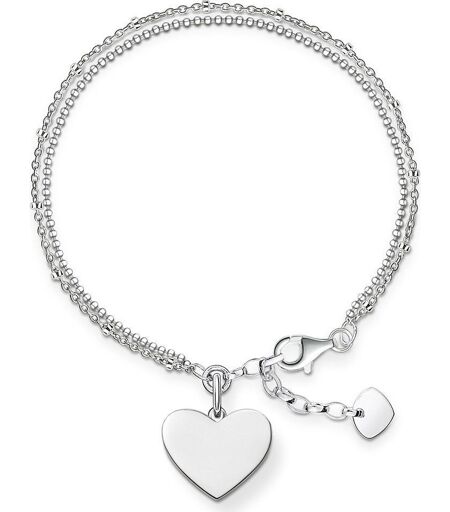 THOMAS SABO Armband aus der Sterling Silver Kollektion. - Gravierbarer Liebesbeweis - Romantisches Statement - Verspielte Raffinesse Eine stilvolle Liebeserklärung: Das feminine Doppelarmband mit einem gravierbaren Herzanhänger transportiert die feine Liebe raffiniert über die Verspieltheit des Schmuckstücks. Material: 925er Sterlingsilber Verschluss: Karabinerverschluss Maße: Größe ca. 1,5 cm (0,59 Inch), Breite ca. 0,2 cm (0,08 Inch) Größe: L19,5v (16,00 - 19,50 cm) ...