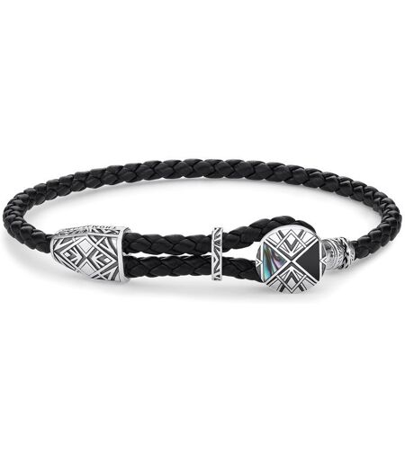 Material: 925er Sterlingsilber, geschwärzt, Echtleder Steine: Abalone Perlmutt, Onyx Farbe: silberfarben, schwarz, türkis, grün, violett Verschluss: Knebelverschluss Funktionen: längenverstellbar Höhe: ca. 1,50 cm (0,59 Inch) Breite: ca. 1,50 cm (0,59 Inch) ...