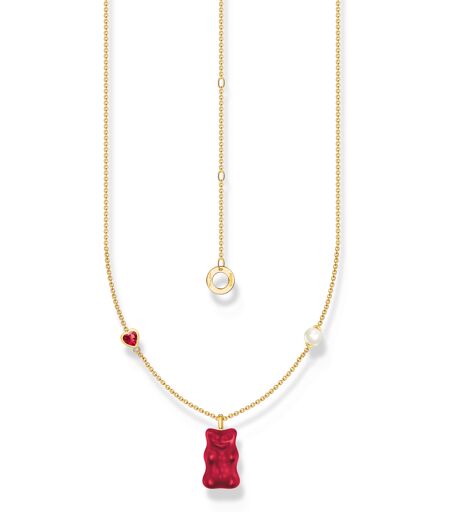 Tauche ein in die faszinierende Welt der Thomas Sabo Halskette! Dieses exklusive Schmuckstück besticht mit seinen zahlreichen Vorteilen und Alleinstellungsmerkmalen. Die Kette mit Anhänger wurde aus recyceltem Silber gefertigt und mit einer edlen 18k-Vergoldung veredelt. Das Herzstück der Kette ist der Anhänger in Form eines roten HARIBO Goldbären, der aus leicht satiniertem, hochwertigem Kristallglas besteht. Er wird von einer zarten Süßwasserzuchtperle und einem funkelnden roten Stein im Herzschliff begleitet, was dem Schmuckstück eine einzigartige Note verleiht. Die Länge der Halskette kann zwischen 40 und 45 cm individuell angepasst werden, um perfekt zu jedem Outfit zu passen. Mit diesem atemberaubenden Accessoire wirst du alle Blicke auf dich ziehen und deinen persönlichen Stil perfekt unterstreichen. Material 750 Gelbgold Vergoldung, 925 Sterlingsilber Farbe gelbgoldfarben, rot, weiß Steine Glas, Süßwasserzuchtperle, Glas-Keramik Stein Verschluss Karabinerverschluss Funktionen längenverstellbar Höhe ca. 19,00 mm (0,75 Inch) Breite ca. 8,50 mm (0,33 Inch) Stärke ca. 1,00 mm (0,04 Inch) ...