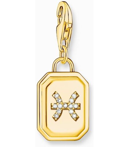 Der Thomas Sabo Charm-Anhänger Sternzeichen Fisch mit Steinen vergoldet ist ein exquisites Schmuckstück. Die Vergoldung verleiht dem Anhänger einen edlen Glanz, während die funkelnden Steine für eine zusätzliche Portion Eleganz sorgen. ...