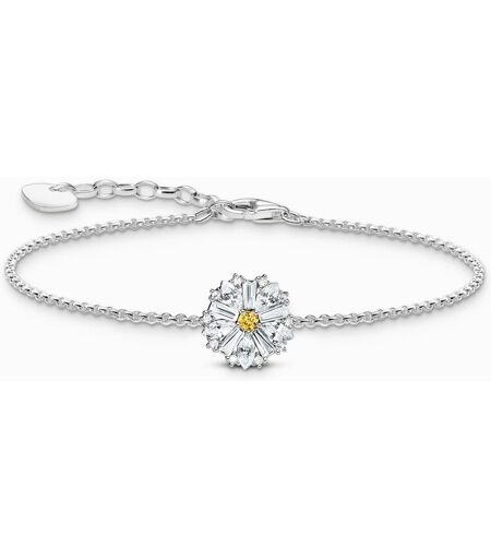 Das Thomas Sabo Armband für Damen besteht aus recyceltem 925er Silber und hat als Mittelpunkt ein Gänseblümchen, das mit aufwendig geschliffenen Zirkonia-Steinen in Weiß und Gelb verziert ist. Dank des Verlängerungskettchens ist die Länge des Armbands von 16 bis 19 cm verstellbar. Ein stilvolles und edles Accessoire, das jedes Outfit aufwertet. Material: Recyceltes 925 Silber Farbe: silberfarben, weiß, gold Steine: Zirkonia weiß, Zirkonia gold Verschluss: Karabinerverschluss Funktionen: längenverstellbar Höhe: ca. 7,00 mm (0,28 Inch) Breite: ca. 7,00 mm (0,28 Inch) Stärke: ca. 1,50 mm (0,06 Inch) ...