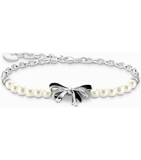 Entdecke das Schleifen-Armband Lovely Romance von Thomas Sabo – ein wahres Meisterwerk, das deinen persönlichen Stil auf unverwechselbare Weise unterstreicht. Dieses exquisite Armband ist nicht nur ein Schmuckstück, sondern eine emotionale Verbindung zu besonderen Momenten und geliebten Menschen. Es ist die perfekte Wahl, um dir selbst oder jemandem, den du schätzt, eine ganz besondere Freude zu bereiten. Die einzigartige Kombination aus geschwärztem, recyceltem Silber und zarten Süßwasserzuchtperlen verleiht dem Armband eine elegante Ausstrahlung, die Herzen höher schlagen lässt. Im Mittelpunkt prangt die kunstvoll gestaltete, dreidimensionale Schleife, verziert mit funkelnden weißen Zirkonia-Steinen und einer handaufgetragenen schwarzen Emaille. Jedes Detail ist liebevoll ausgearbeitet und erzählt eine Geschichte von Anmut und Verspieltheit. Mit einer verstellbaren Länge von 16 bis 19 cm passt sich das Armband perfekt deinem Handgelenk an und sorgt für einen komfortablen Sitz. Ob im Alltag oder zu besonderen Anlässen – dieses Schmuckstück lässt sich mühelos kombinieren und wird zum strahlenden Highlight deines Looks. Höhe: ca. 14,70 mm Breite: ca. 20,00 mm Stärke: ca. 2,50 mm ...