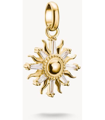 Entdecke den strahlenden Thomas Sabo Sonnen-Charm, gefertigt aus hochwertigem, recyceltem 925er Silber und veredelt mit einer edlen 18k Vergoldung. Dieses detailverliebte Schmuckstück besticht durch seine filigranen Strahlen und die funkelnden weißen Zirkonia-Steine im Baguette-Schliff, die den Charme der Sonne perfekt einfangen. Dank der feinen Öse lässt sich der Charm individuell an deinen Armbändern und Ketten kombinieren und wird so zu einem positiven Begleiter in deinem Alltag. Feiere jeden Tag mit diesem leuchtenden Anhänger und kreiere einzigartige Looks, die deine persönliche Geschichte erzählen. Hol dir das Sonnenlicht in dein Schmuckkästchen! Material: 18k Vergoldung, Recyceltes 925 Silber Farbe: gelbgoldfarben, weiß Steine: Zirkonia weiß Verschluss: Öse Höhe: ca. 22,00 mm Breite: ca. 14,50 mm ...