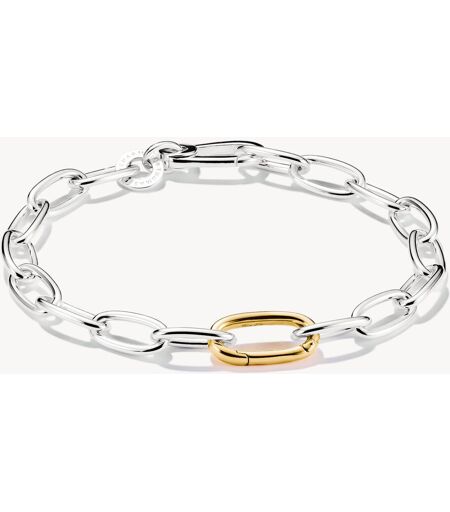 Entdecken Sie das charmante Thomas Sabo Charm-Armband in elegantem Bicolor-Design. Hergestellt aus recyceltem 925er Silber, vereint dieses Armband Nachhaltigkeit mit Stil. Im Mittelpunkt steht ein großes, ovales Kettenglied aus edler 18k Vergoldung, das sich leicht öffnen lässt, um Charms mit Öse anzubringen. Die kleineren Kettenglieder sind ideal für Charms mit Karabinerverschluss und ermöglichen Ihnen, Ihre persönliche Schmuck-Kreation nach Lust und Laune zu gestalten. Dieses Armband ist nicht nur ein modisches Accessoire, sondern auch eine wunderbare Möglichkeit, Erinnerungen festzuhalten und individuelle Looks zu kreieren. Perfekt für jeden Anlass! Material: 18k Vergoldung, Recyceltes 925 Silber Farbe: silberfarben, gelbgoldfarben Verschluss: Ringverschluss Höhe: ca. 8,50 mm Breite: ca. 16,50 mm Stärke: ca. 6,00 mm ...