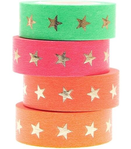 Rico Design GmbH & Co.KG Tape Set Neon, Sterne , 4 Stk, 1,5cm x 10m