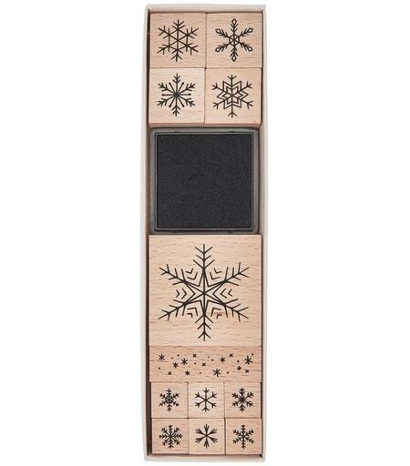"Das 13-teilige Holzstempelset der Kollektion ""Put a Bow on It"" zeigt unterschiedlich große Schneeflocken in den verschiedensten Ausführungen. Dank des mitgelieferten, schwarzen Stempelkissens können Sie sofort mit der Kartengestaltung starten oder schlichte Verpackungen verzieren. - ideal für Weihnachtskarten, Geschenkanhänger oder -verpackungen - für alle glatten Oberflächen geeignet - Motiv: Schneeflocken - Inhalt: 12 Stempel und 1 Tuschekissen (schwarz) - Design: Put a Bow on It" ...
