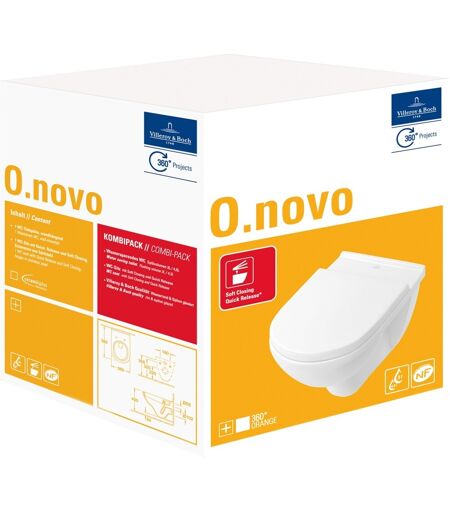 O.novo - Überraschend. Vielfältig. Preiswert. Wer sein Bad aus einer Hand einrichten und dabei nicht auf markantes Design verzichten will, liegt mit O.novo von Villeroy & Boch genau richtig. Das schlichte Design ist extrem vielseitig und in vielen Formen und Größen für jedes Bad erhältlich. Das große O.novo Sortiment umfasst Waschbecken, WCs, Bidets, Urinale, Dusch- und Badewannen. Zahlreiche Größen und Montagearten für Ihr ganz individuelles Bad Stand-WCs mit und ohne keramischen Spülkasten erhältlich Neben Standard- auch viele Compact-Modelle für kleinere Raumsituationen verfügbar Passende WC-Sitze mit SoftClosing- und QuickRelease-Funktion Produktdetails: Funktionales WC-Design mit klarer Note CeramicPlus für optimale Reinigung Mit AquaReduct bei jedem Spülen 1,5 Liter Wasser sparen Sanitärkeramik perfekt für das Bad: beständig, langlebig und reinigungsfreundlich CeramicPlus - Mehr Sauberkeit - mehr Zeit für Lebensqualität Die schmutzabweisende Oberfläche CeramicPlus von Villeroy & Boch spart Ihnen Zeit und Reinigungsaufwand. Die Keramikoberfläche ist hydrophob und weist Wasser einfach ab. So können Schmutz und Kalk sich gar nicht erst festsetzen. Perfekte Hygiene dank CeramicPlus Spart Zeit bei der Reinigung Spart Reinigungsmittel und schont die Umwelt Geeignet für alle haushaltsüblichen Reiniger AquaReduct - Das Wassersparsystem von Villeroy & Boch Mit AquaReduct sparen Sie Wasser und Geld dank der reduzierten Spülmenge von 6 auf 4,5 Liter. 1,5 Liter Wasserersparnis bei unverminderter Spülleistung Spülung mit nur 3/4,5 Litern Erhältlich für wandhängende und bodenstehende WCs verschiedener Kollektionen Sanitärkeramik - Das perfekte Material für Ihr Bad Sanitärkeramik ist der typische Werkstoff für Toiletten, Waschbecken und Bidets. Villeroy & Boch blickt auf mehr als zweieinhalb Jahrhunderte Keramikproduktion zurück und bietet Ihnen besonders stoßfeste, glänzende und langlebige Sanitärkeramik für Ihr Bad. Mit dicker Mehrfachglasur für langlebige Produkte Besonders hohe Stoß- und Kratzfestigkeit Sehr einfache Reinigung - Empfehlenswert mit CeramicPlus- und AntiBac-Veredelung Nachhaltig produziert ViProtect - Der effiziente Schallschutz von Villeroy & Boch Mit dem Schallschutzset ViProtect von Villeroy & Boch reduzieren Sie Badgeräusche nachweislich zwischen Wand und WC. Dieser ist mit allen WC-Befestigungen von Villeroy & Boch kompatibel. Mit dem Schallschutzset erwiesene Reduzierung der Lautstärke um die Hälfte Perfekt zur Kombination mit WC-Befestigungen von Villeroy & Boch Aus umweltfreundlichen, unbedenklichen Material gefertigt Weitere Produktdetails: Hersteller: Villeroy & Boch Hersteller-Artikelnummer: 5660H1R1 Artikel-Kategorie: WC-Sets Tiefspül-WCs Wandhängende WCs Serie: O.novo genaue Produktbezeichnung: Villeroy & Boch O.novo Combi-Pack, wandhängend, Weiß Alpin CeramicPlus Stilrichtung: Metropolitan Country Länge in mm: 560 Breite in mm: 360 Höhe in mm: 350 Gewicht in kg: 18 Hergestellt in: Norm: EN 997 Material: Sanitärkeramik... ...
