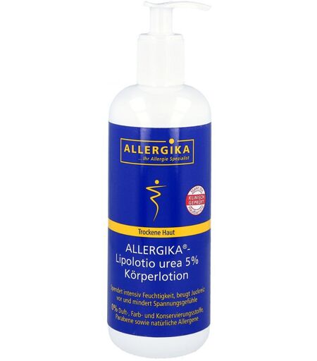 Anwendungsgebiet von Allergika Lipolotio urea 5%Hautbarriere stärkende, feuchtigkeitsspendende Körperpflege bei trockener, gespannter und schuppiger Haut oder Sebostase.