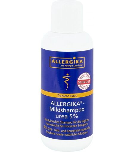 Anwendungsgebiet von Allergika Mildshampoo urea 5%Allergika Mildshampoo urea 5% – Sanfte Pflege für empfindliche KopfhautDas Allergika Mildshampoo urea 5% wurde speziell für die tägliche Haar- und Kopfhautpflege entwickelt. Mit besonders milden Zuckertensiden reinigt es schonend, ohne die Haut zu reizen, und ist daher auch für sensible oder problematische Kopfhaut geeignet.Der Anteil von 5 % Urea bindet Feuchtigkeit, schützt die Kopfhaut vor Austrocknung und pflegt gleichzeitig trockenes, strapaziertes Haar. Das Shampoo ist leicht auswaschbar und sorgt für ein angenehm gepflegtes Haargefühl.Es verzichtet konsequent auf Seifen und allergenisierende Inhaltsstoffe wie Cocamidopropylbetain, die in vielen herkömmlichen Shampoos enthalten sind.Die Formulierung ist frei von Duft-, Farb- und Konservierungsstoffen, Parabenen, natürlichen Allergenen sowie den 328 häufigsten Kontaktallergenen laut Deutscher Kontaktallergie-Gruppe.Dermatologisch empfohlen, eignet sich das Allergika Mildshampoo urea 5% besonders für Menschen mit Schuppen, Psoriasis oder empfindlicher Kopfhaut – für sanfte Reinigung und intensive Pflege.Wirkstoffe / Inhaltsstoffe / ZutatenAllergika Mildshampoo urea 5% enthält:Aqua, Sodium Laureth Sulfate,Lauryl Glucoside, Urea, PEG-18 Glyceryl Oleate/Cocoate, Sodium Chloride, Caprylyl Glycol, Lactic Acid, PEG/PPG-14/4 Dimethicone, Glycol Distearate, Steareth-4, p-Anisic AcidGegenanzeigenBei bekannter Überempfindlichkeit gegenüber einem der oben genannten Inhaltsstoffe sollte das Produkt nicht angewendet werden.DosierungAnwendungsempfehlung von Allergika Mildshampoo urea 5%:Zur täglichen Haarwäsche. Haare nicht zu heiß waschen. Kurz einschäumen und mit lauwarmem Wasser ausspülen. Nicht über 25°C lagern.Allergika Mildshampoo urea 5% können in Ihrer Versandapotheke www.apotheke.at erworben werden. ...