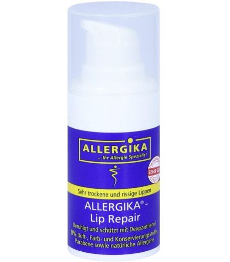 Anwendungsgebiet von Allergika Lip RepairAllergika Lip Repair – Intensiver Schutz für empfindliche LippenAllergika Lip Repair ist ein speziell entwickelter Lippenbalsam, der die empfindliche Haut der Lippen intensiv pflegt, schützt und regeneriert. Mit seiner Wasser-in-Öl-Formulierung und einem Lipidanteil von 32 % beugt er effektiv Austrocknung und Feuchtigkeitsverlust vor.Die Wirkstoffe Dexpanthenol und Allantoin fördern die Wundheilung, beruhigen gereizte Haut und lindern Entzündungen – ideal bei trockenen, spröden oder rissigen Lippen sowie bei eingerissenen Mundwinkeln (Rhagaden).Der Balsam bietet schnellen, lang anhaltenden Schutz und ist optimal zur Therapiebegleitung bei austrocknenden Behandlungen wie Vitamin-A-Akne-Therapien geeignet.Dank des hygienischen Airless-Spenders ist eine saubere, praktische Anwendung gewährleistet.Allergika Lip Repair ist frei von Duft-, Farb- und Konservierungsstoffen, Parabenen, natürlichen Allergenen sowie den 328 häufigsten Kontaktallergenen laut DKG.Dermatologisch-allergologisch getestet und von Hautärzten empfohlen, ist er die ideale Lösung zur Pflege empfindlicher Lippen und Mundwinkel – auch bei Lippenleckekzem.Wirkstoffe / Inhaltsstoffe / ZutatenAllergika Lip Repair enthält:Aqua, Caprylic/Capric Triglyceride,Octyldodecanol, Glycerin,Polyglyceryl-2 Dipolyhydroxystearate, Panthenol, Cera alba, Polyglyceryl-3-Diisostearate, Tocopheryl Acetate,Magnesium Stearate, Zinc Sulfate, Glyceryl Caprate, Sodium Hydroxide, Allantoin, p-Anisic Acid, Citric AcidGegenanzeigenBei bekannter Überempfindlichkeit gegenüber einem der oben genannten Inhaltsstoffe sollte das Produkt nicht angewendet werden.DosierungAnwendungsempfehlung von Allergika Lip Repair:Mehrmals täglich eine erbsengroße Menge auf die Lippen auftragen. Nicht über 25°C lagern.Allergika Lip Repair können in Ihrer Versandapotheke www.apotheke.at erworben werden. ...